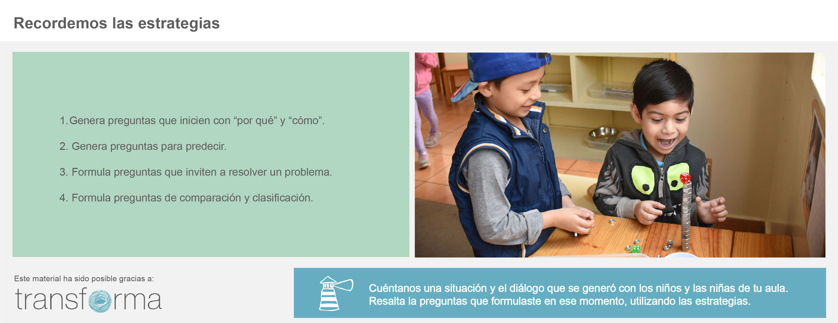 Y comenta: Luego de haber participado en el curso, cuéntanos una situación y el diálogo que se generó con los niños y las niñas de tu aula. Resalta la preguntas que formulaste en ese momento.